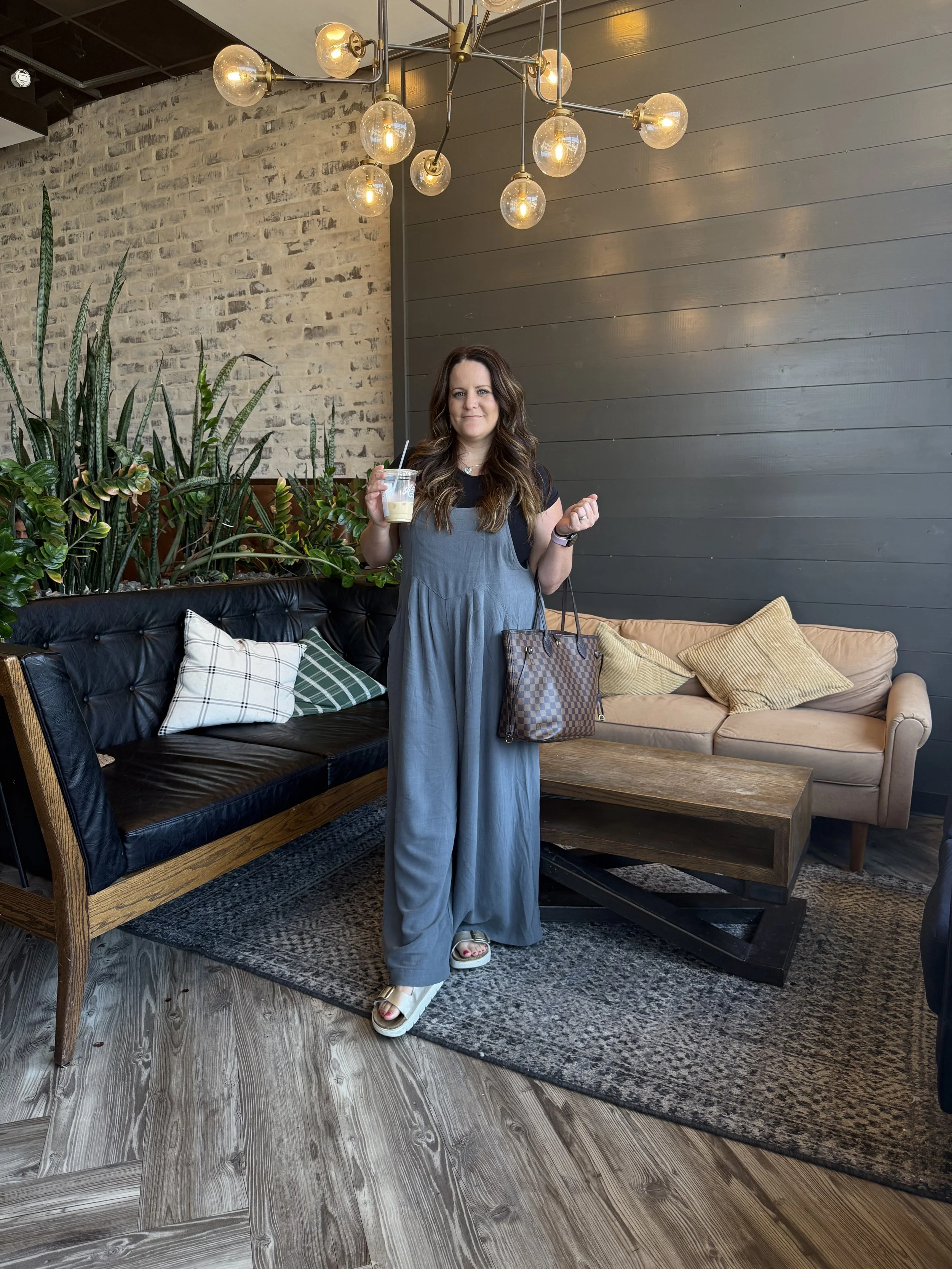 I purchased all of these items from amazon HERE on my list of photographer outfit ideas. I love this gray-blue overall set with a t-shirt under it. Had pockets, was comfortable and so cute for the fall season. I wish I sized down since its naturally oversized.